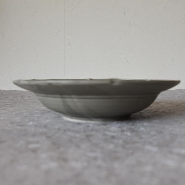 白磁/グレー花リム8寸深皿