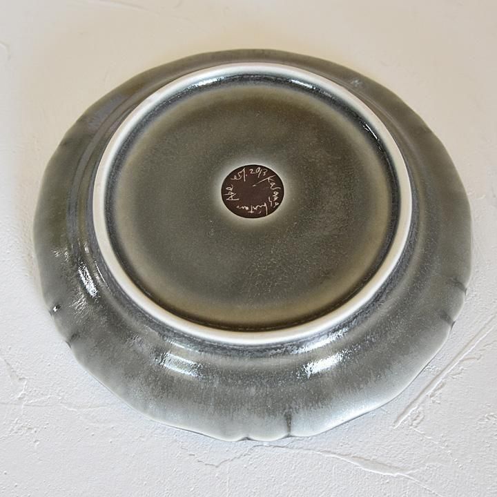 花形の愛らしい5寸皿です。取り皿によさそうです。深緑がかったグレー。※完売次第終了し再入荷の予定ございません。