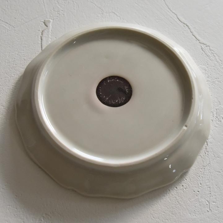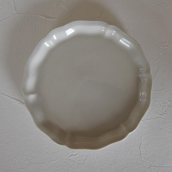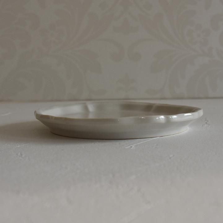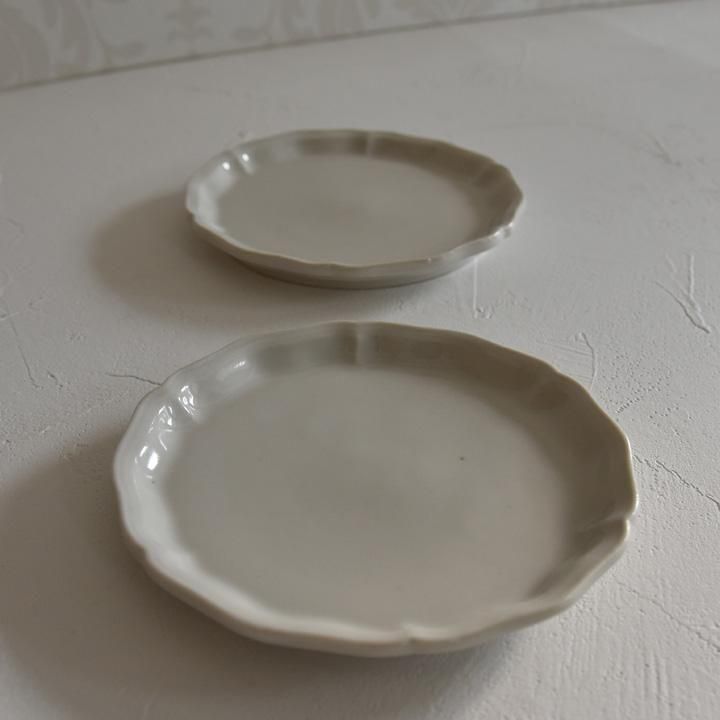阿部慎太朗さんの美しいつるんとした「白」の4寸皿です。リムのところだけ少し立ち上がり見込みがフラットなので例えば和菓子を楊枝できるようなときに使いやすいお皿です。完売次第終了し、再入荷予定ございません。
