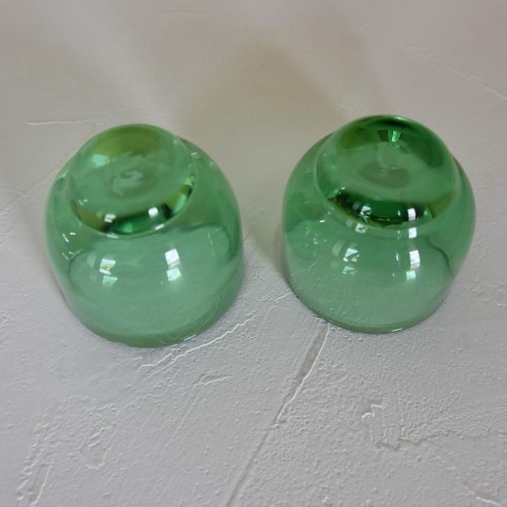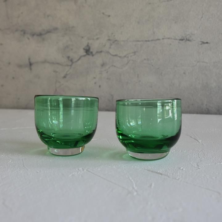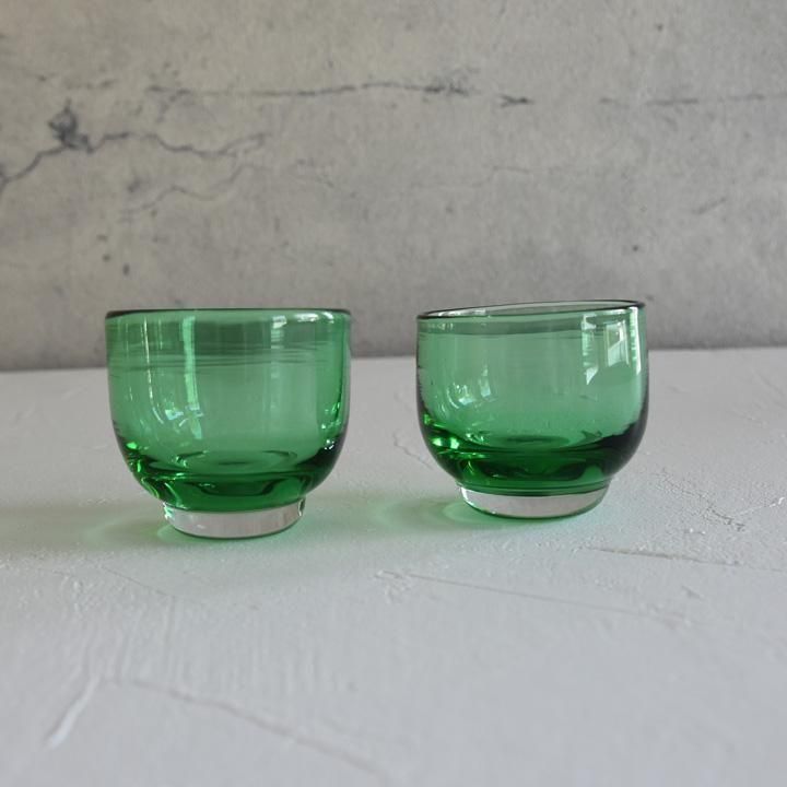 黒川登紀子さんの鮮やかなグリーンの茶杯。小さなおかずをいれても、酒器としてもお使いいただけるかたちです。残2客