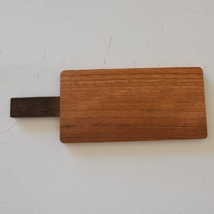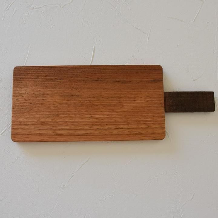 田口慎介さんから届いた小さなカッティングボードです。まさに名前のとおり「チーズボード」というサイズ感。ボード自体の長さは20cm、幅10cmとちょっと小さなものを切りたいな、というときに使いやすいサイズ。ハンドル7cmを含めると長さ27cmとなります。材:くるみ、オイル仕上げ(お取り扱い説明書添付してお送りします)